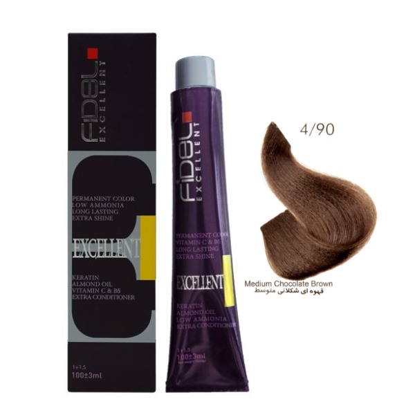 رنگ مو فیدل قهوه‌ای شکلاتی متوسط شماره 4.90 حجم 100 میل