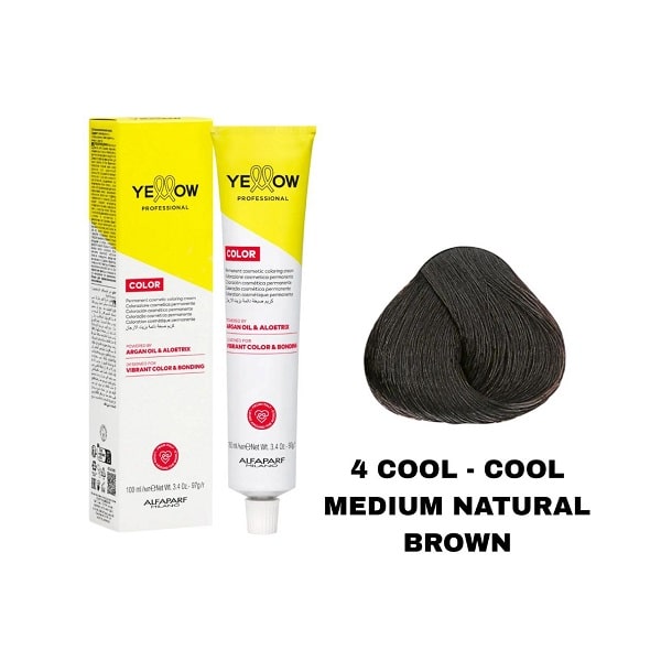 رنگ مو یلو شماره 4 قهوه‌ای طبیعی سرد متوسط COOL MEDIUM NATURAL BROWN حجم 100 میل