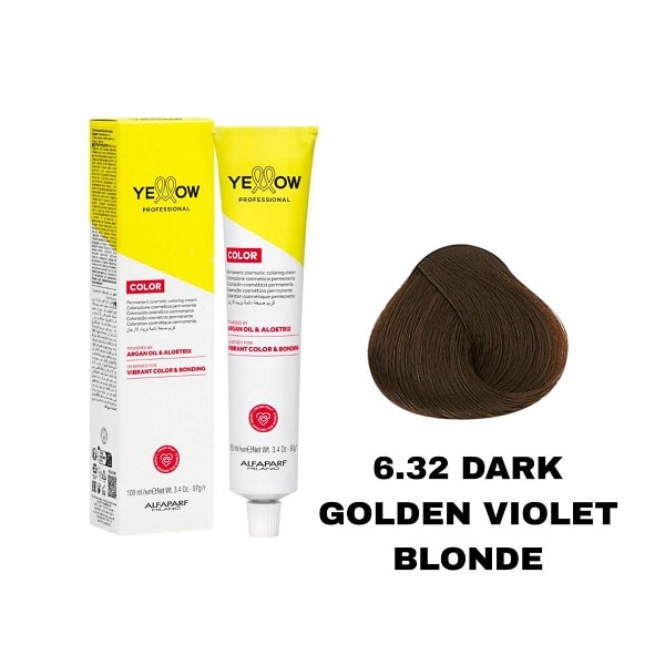 رنگ مو یلو شماره 6.32 بلوند طلایی بنفش تیره DARK GOLDEN VIOLET BLONDE حجم 100 میل