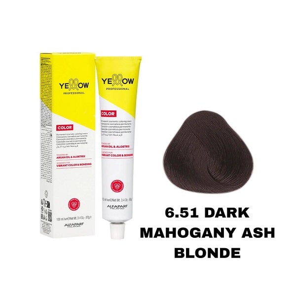 رنگ مو یلو شماره 6.51 بلوند دودی ماهاگونی تیره DARK MAHOGANY ASH BLONDE حجم 100 میل