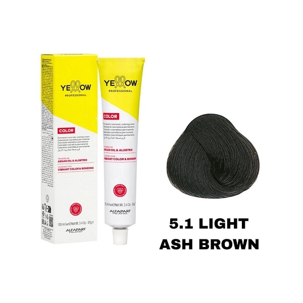 رنگ مو یلو شماره 5.1 قهوه‌ای دودی روشن LIGHT ASH BROWN حجم 100 میل