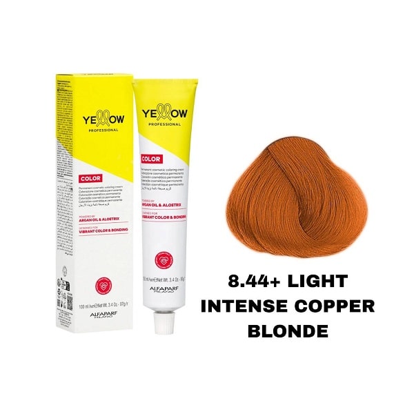 رنگ مو یلو شماره 8.44+ بلوند مسی روشن شدید LIGHT INTENSE COPPER BLONDE حجم 100 میل