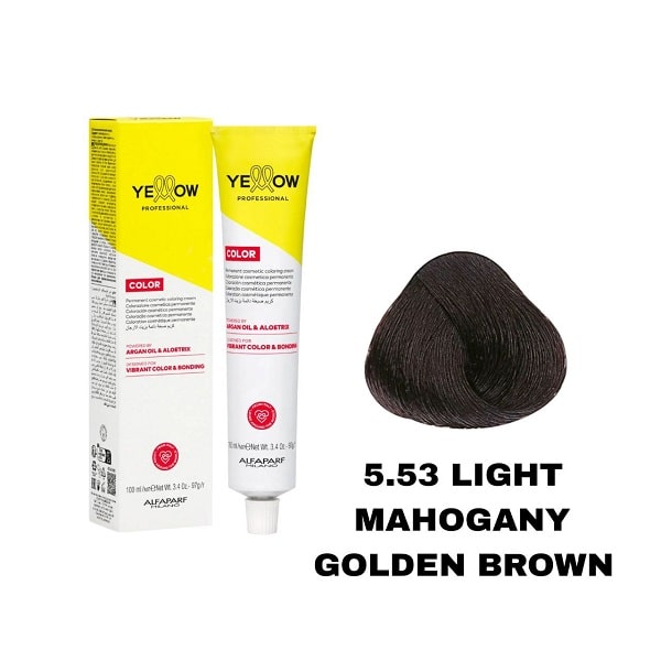 رنگ مو یلو شماره 5.53 قهوه‌ای طلایی ماهاگونی روشن LIGHT MAHOGANY GOLDEN BROWN حجم 100 میل