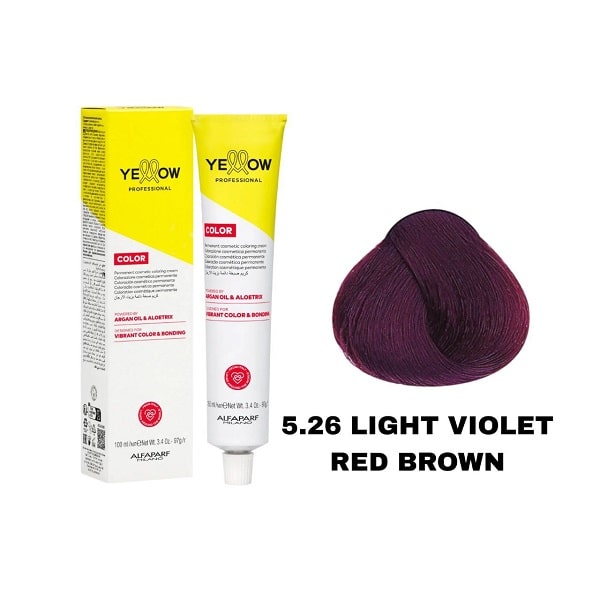 رنگ مو یلو شماره 5.26 قهوه‌ای بنفش قرمز روشن LIGHT VIOLET RED BROWN حجم 100 میل