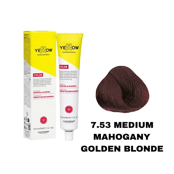 رنگ مو یلو شماره 7.53 بلوند طلایی ماهاگونی متوسط MEDIUM MAHOGANY GOLDEN BLONDE حجم 100 میل