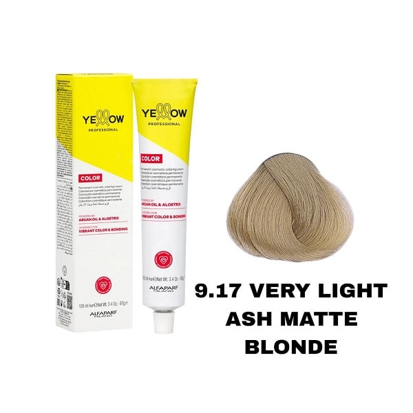 رنگ مو یلو شماره 9.17 بلوند دودی خیلی روشن مات VERY LIGHT ASH MATTE BLONDE حجم 100 میل