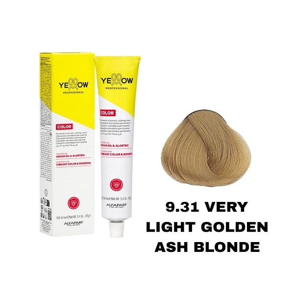 رنگ مو یلو شماره 9.31 بلوند طلایی دودی خیلی روشن VERY LIGHT GOLDEN ASH BLONDE حجم 100 میل